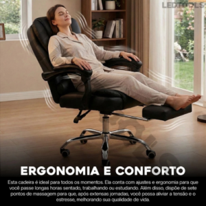 Cadeira Presidente Escritório Massageadora Com 7 Pontos de Massagem E Apoio Pés